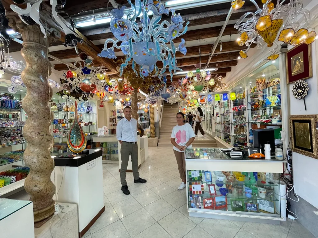 Today, their creations, chandeliers, sculptures, and artistic glass pieces are showcased in the Reno Schiavon showroom, where tradition and innovation come together in a timeless expression of Murano craftsmanship.