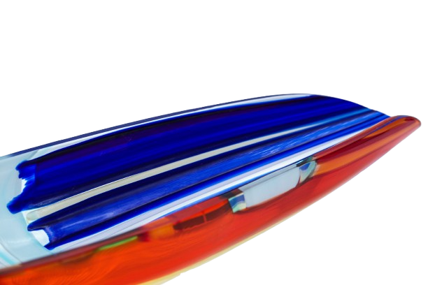 Canoae centerpiece made of blown glass with zanfirico and aventurine canes.