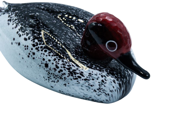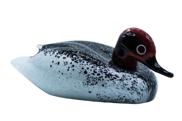 Stylized blown glass elephant with polychrome color spots.